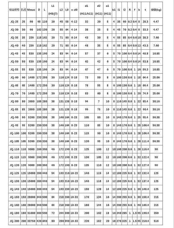 隨著各個(gè)地區(qū)工業(yè)的發(fā)展,夾殼聯(lián)軸器的生產(chǎn)需求也是越來(lái)越高,該聯(lián)軸器傳動(dòng)件生產(chǎn)方式也需要向多樣化發(fā)展,夾殼聯(lián)軸器對(duì)_整個(gè)傳動(dòng)系統(tǒng)工作性能,_工作的可靠性,延長(zhǎng)設(shè)備使用壽命,減振、緩沖、降低噪音、節(jié)能、提高傳動(dòng)效率等方面的特有功能,正在被越來(lái)越多的技術(shù)人員所認(rèn)識(shí)。海鵬機(jī)械廠家接下來(lái)為大家提供一份聯(lián)軸器傳動(dòng)件的規(guī)格表。