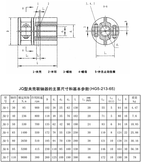 JQ型夾殼聯(lián)軸器的結(jié)構(gòu):