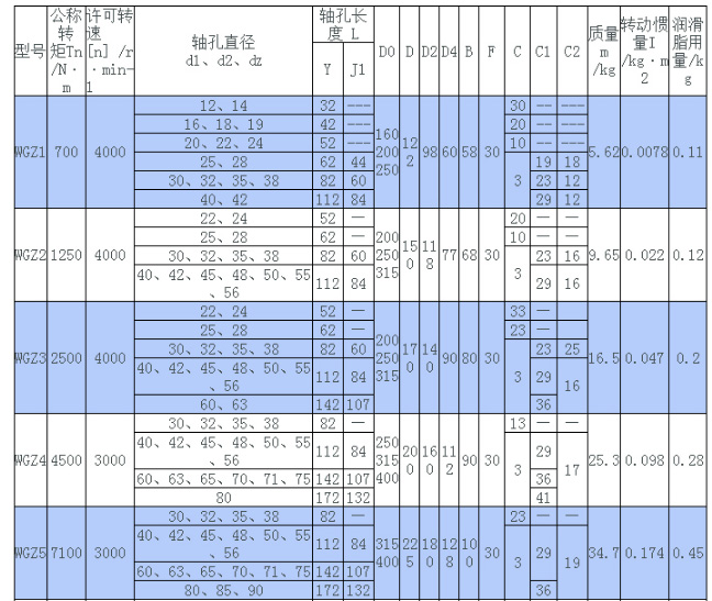 WH型滑塊聯(lián)軸器規(guī)格表和圖紙