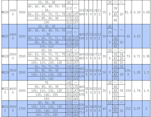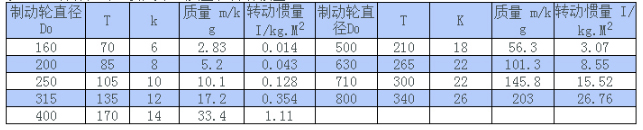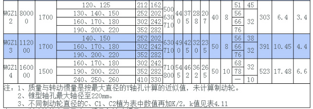 WGZ型帶制動輪鼓形齒式聯(lián)軸器制動輪的主要尺寸、質(zhì)量和轉(zhuǎn)動慣量/mm: